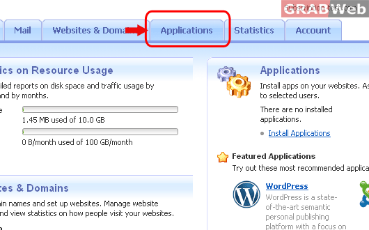 2) Click on "Domains" and then Click on "Control panel" in front of the domain.