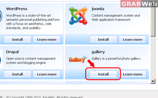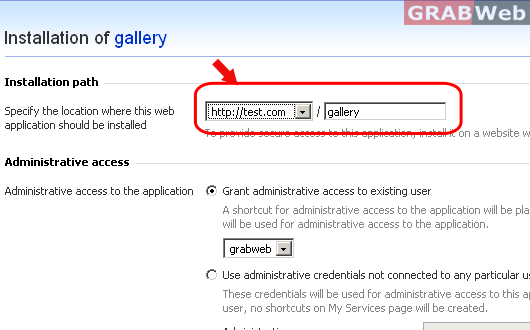 6) Select the domain from the drop down menu on which you want to install Application "Gallery".