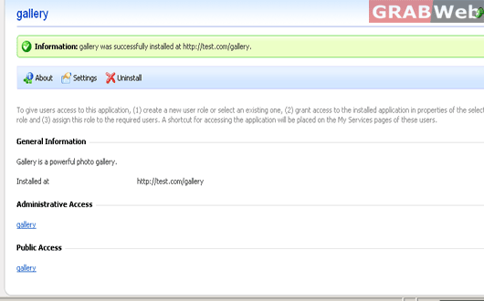 9) You will get the notice "Information: gallery was successfully installed at http://coin.com/gallery."