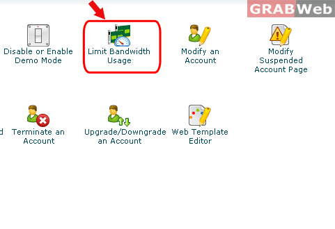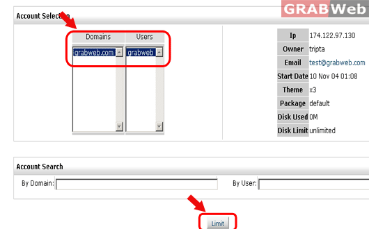 4) Select the account user whose bandwidth usage you want to modify and click on "Limit".