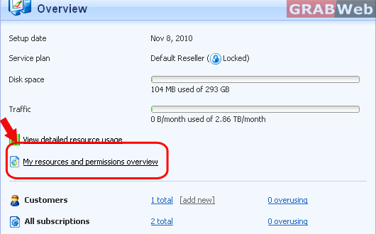 2) Click on " My resources and permession overview" and it will show the resource used by your account.