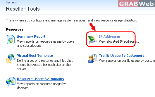 3) Click on "IP Addresses" and it willl show you the IP addresses assigned to your account.