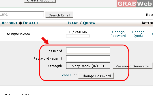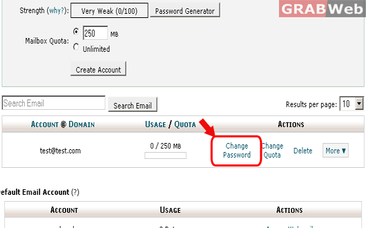 3) Click on "Change Password" option infront of the email address that you have created.