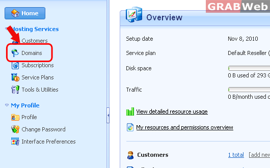 2) Click on "Domains" and then Click on "Control panel" in front of the domain whose files permession you want to change.