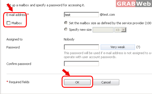 5) Uncheck the checkbix in front of "Mailbox" to suspend the email service for that