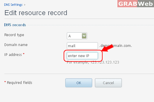 5) Enter the MX record of the mail server where you want your emails to be forwarded and Click on "OK".