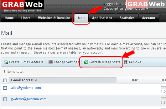 3) Click on "Mail Tab" and click on "Refresh Usage Stats".