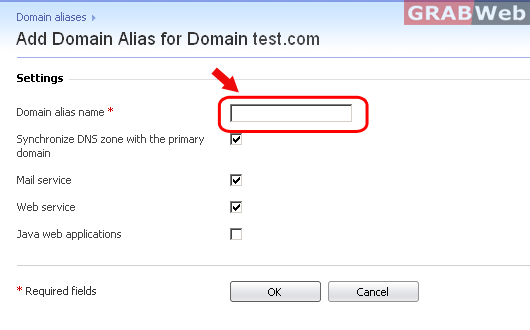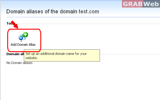 6) Click on "Add Domain Alias" and enter the "Domain alias name".